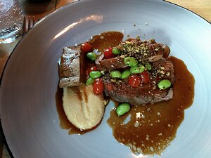 Grahams-Kitchen-Restaurant_Amsterdam_20190510_IMG203052363 fourth course: roast lamb neck, hummus, aubergine, tomberry tomato, broad beans
