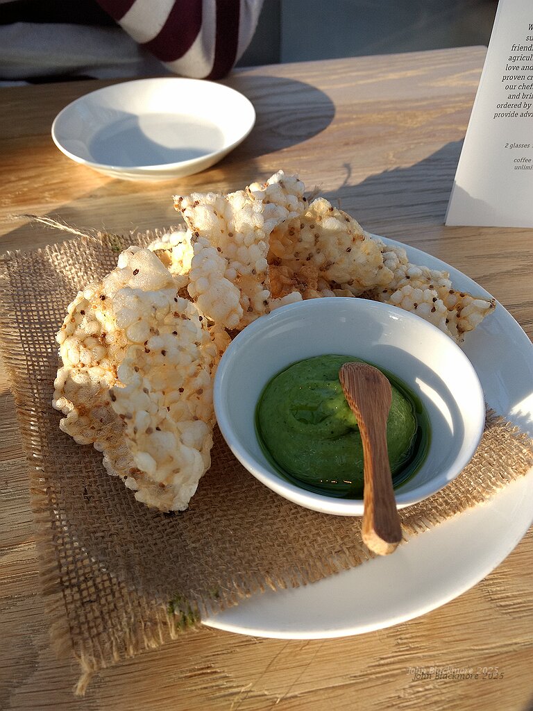 nibbles: Tapioca and mustard seed crisp with a celery dip