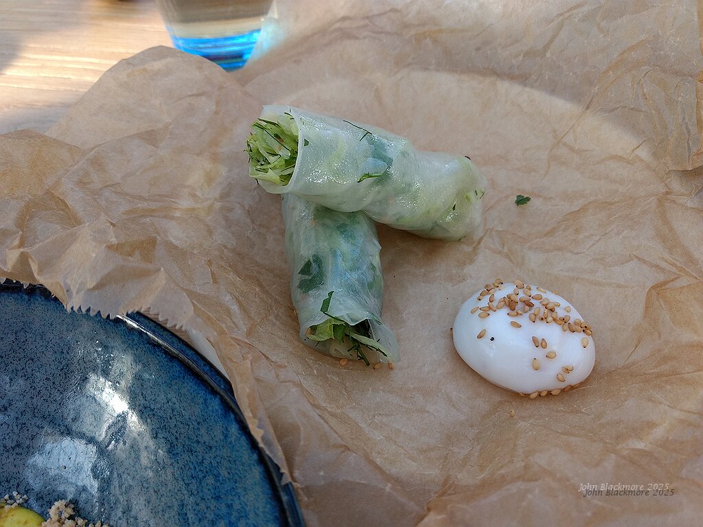 amuse bouche 3: spring rolls stuffed with lettuce and ginger