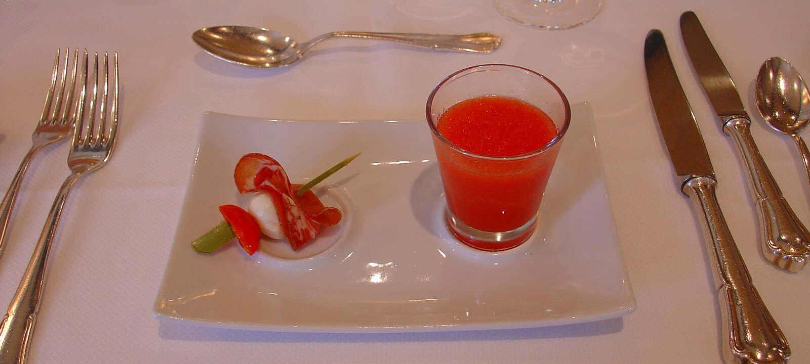 20100902_DSC00782_DSCV1 Amuse bouche: pastèque (water melon) soup, pancetta, cheese