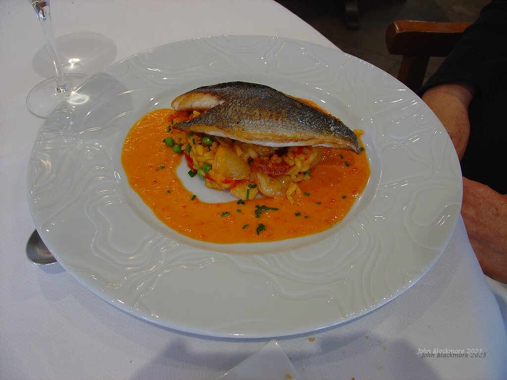 20100902_DSC00786_DSCV1 Main: Daurade royale à la plancha, riz façon Paella, coulis de poivron doux