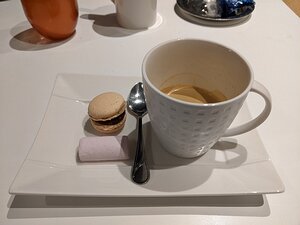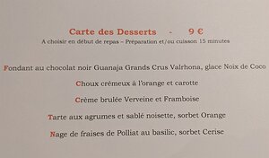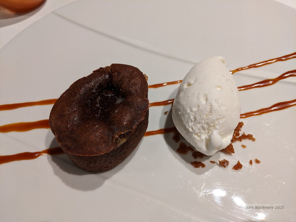 dessert: Fondant au chocolat noir Guanaja Grands Crus Valrhona, glace Noix de Coco