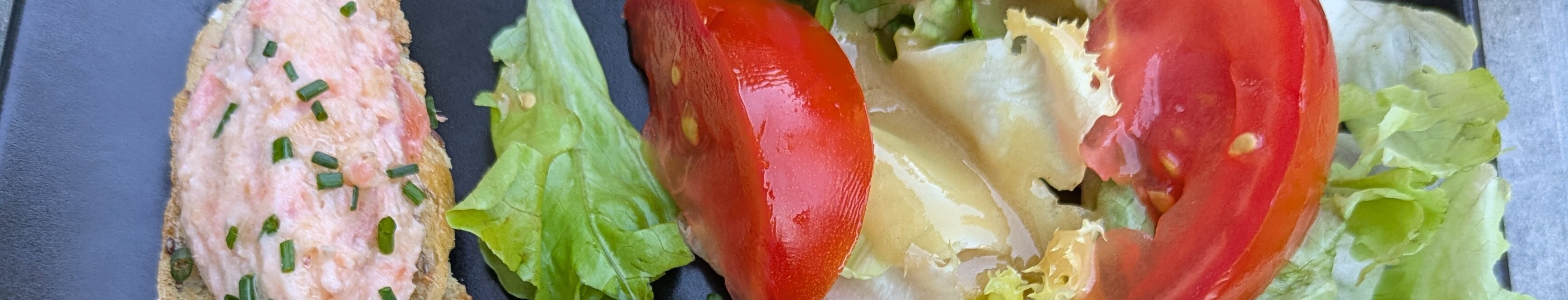 Rillette de truite fraiche et fumée, chèvre de Chavignol et huile de noix, toasts
