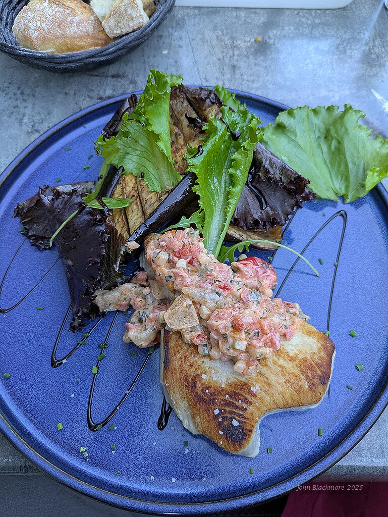 Steak de thon rouge mi-cuit, tartare de légumes et aubergine grillée