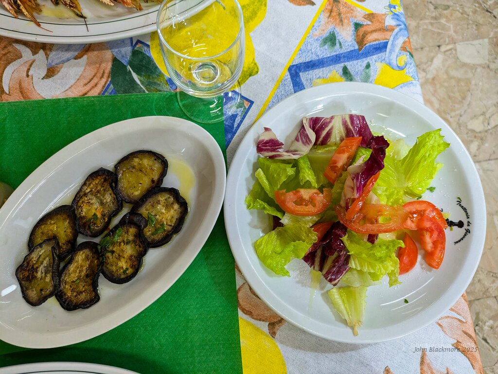 aubergine and salad, Italy, Naples, Trattoria da Giovanni
