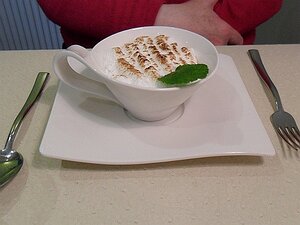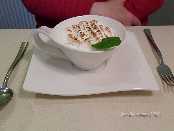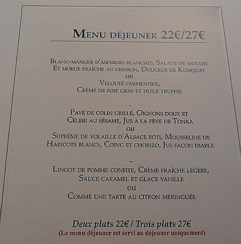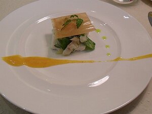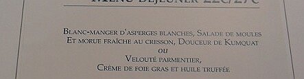 starter: Blanc-manger d'asperges blanches, Salade de moules et morue fraîche au Cresson, Douceur de Kumquat