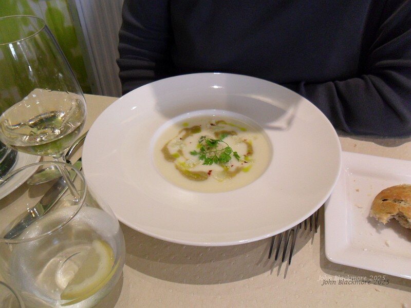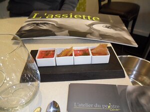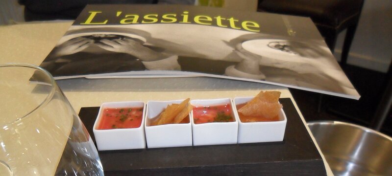 starter: glacé de choux fleur, rillettes de crabe à la coriandre, chutney câpres et raisins