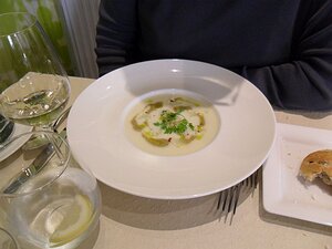20120627_SAM_0655_ES71 starter: glacé de choux fleur, rillettes de crabe à la coriandre, chutney câpres et raisins