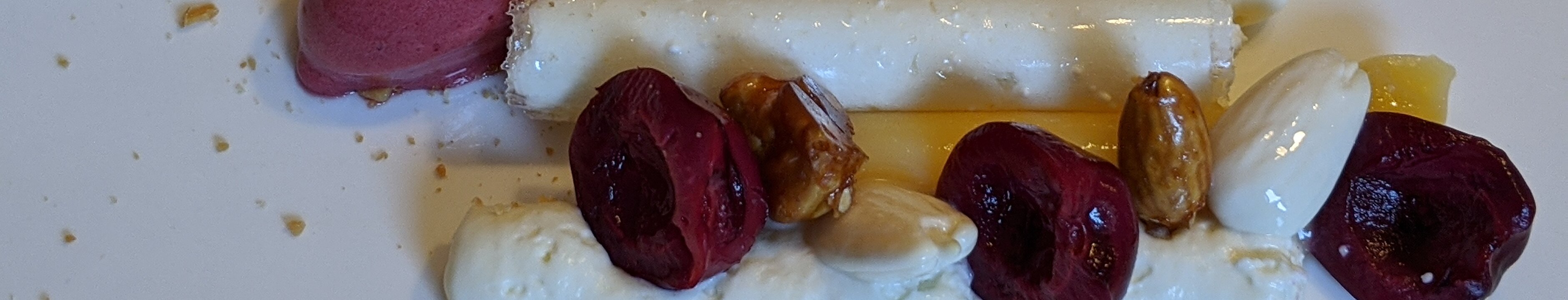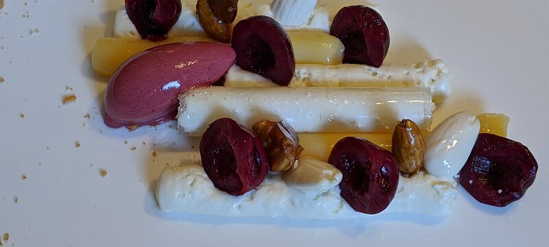 Cerises et Verveine fraîche, Crémeux verveine / Chantilly / Citron / Sorbet Cerises noires