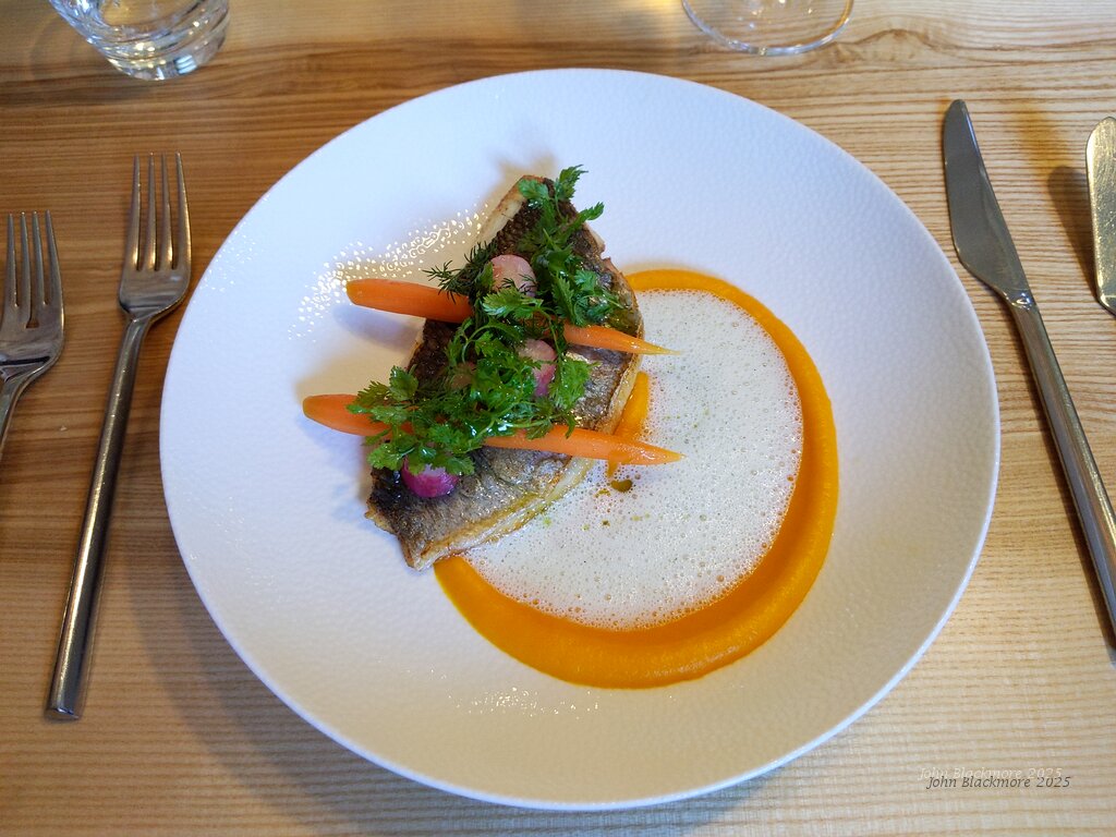 Filet de Daurade Royale, Carottes et Radis Roses au Gingembre / Salade d’Herbes fraîches