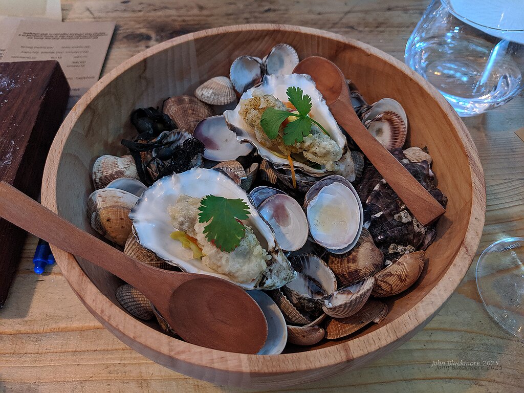Hake, Bacon, Clams (with leeks and pickled walnut cream)