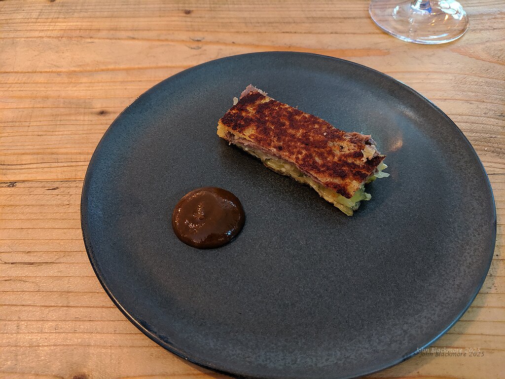 Hogget, Cabbage, Gherkin (with spicy brown tomato sauce and local Mayfield cheese)