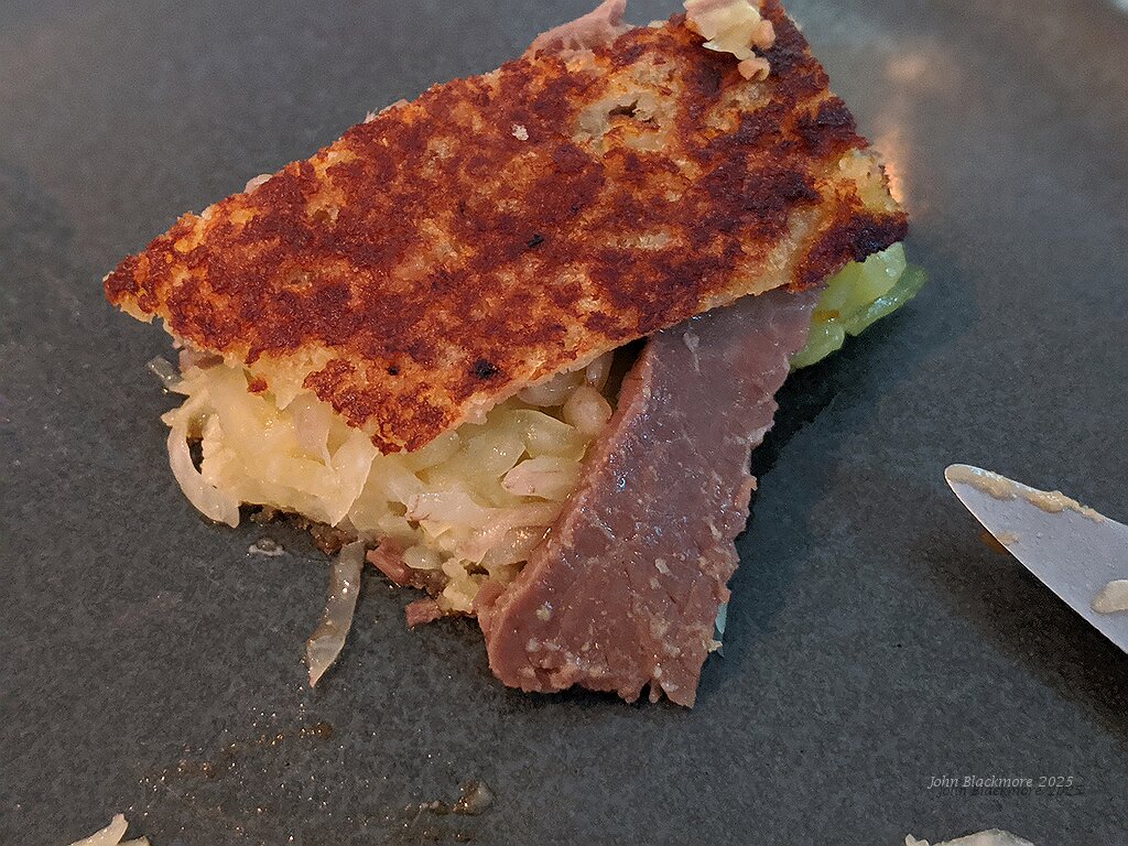 Hogget, Cabbage, Gherkin (with spicy brown tomato sauce and local Mayfield cheese)
