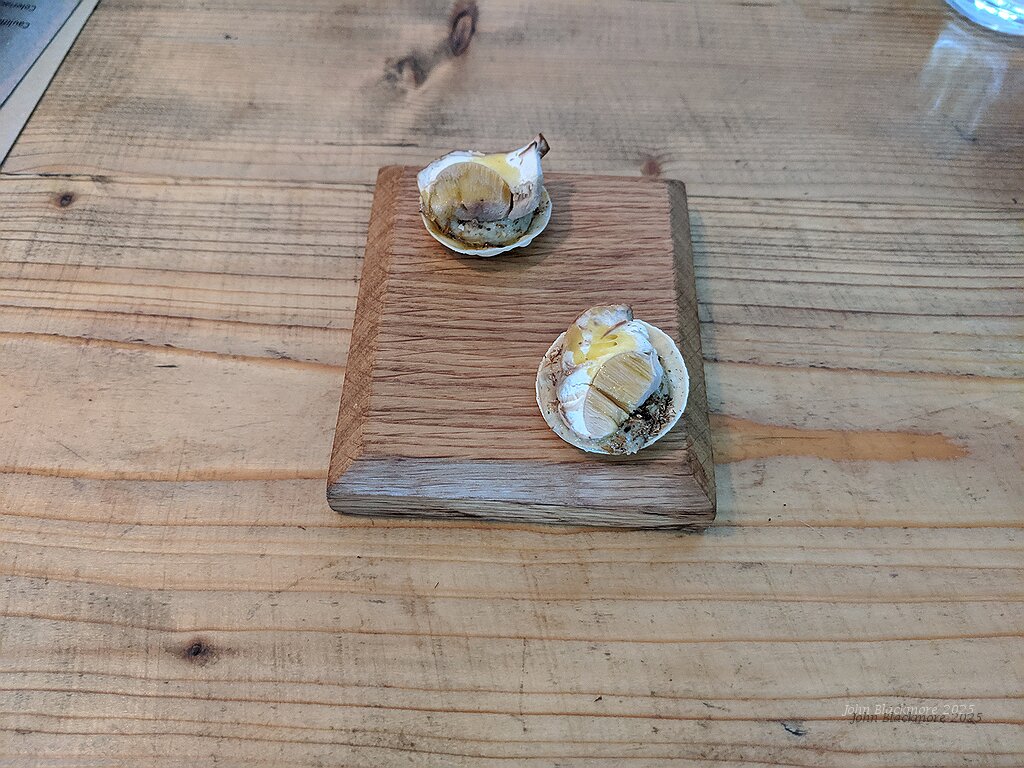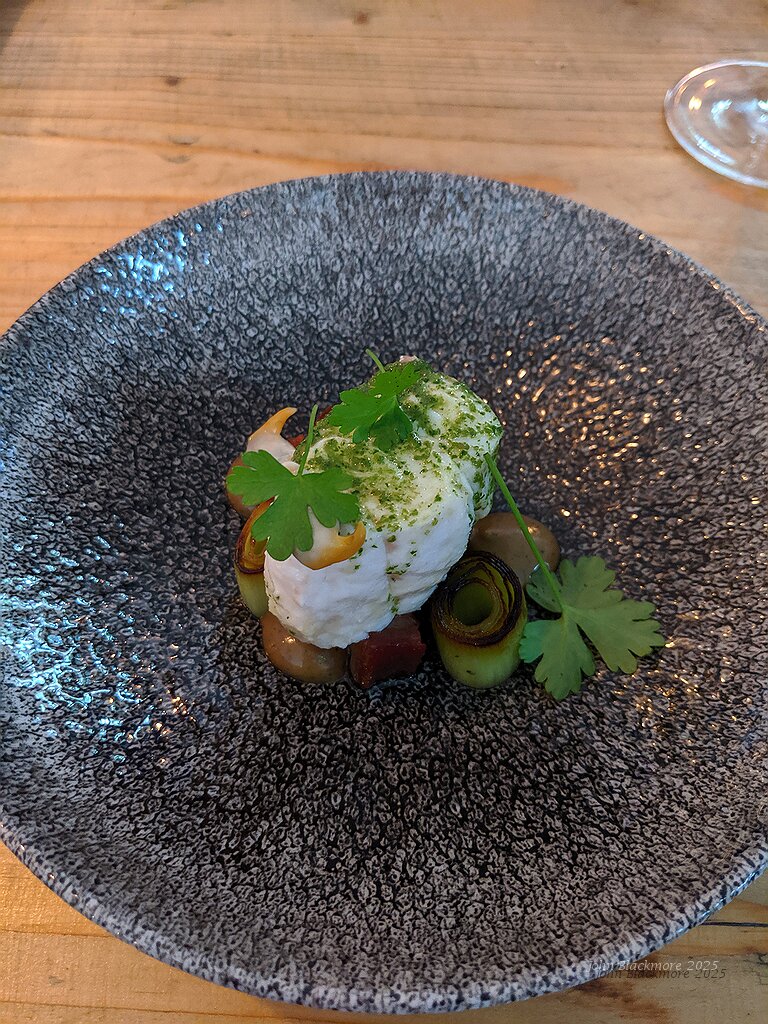 Hake, Bacon, Clams (with leeks and pickled walnut cream)