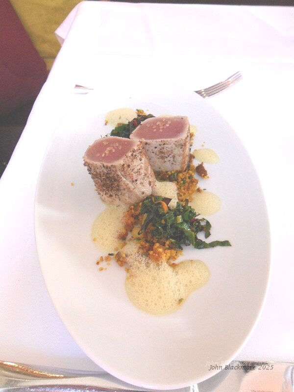 main - Gepfefferter Thunfisch, Curry, Cous Cous, Gemüse - Peppered Tuna, curry, cous cous, vegetables