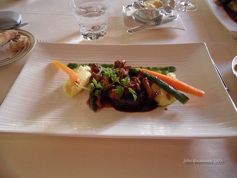Main: une piece de boeuf "Charolaise" prise dans le filet, puree 50/50, une reduction au Syrah