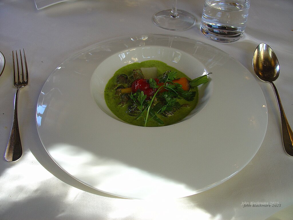 20101026_DSC00849_DSCV1 Starter: une cassolette d'escargots frais de Cleurie aux jeunes légumes. une sauce cressonnière