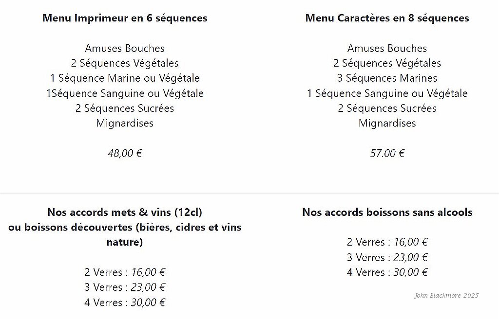 We chose the 57€ Menu Caractères en 8 séquences with 3 glasses of wine