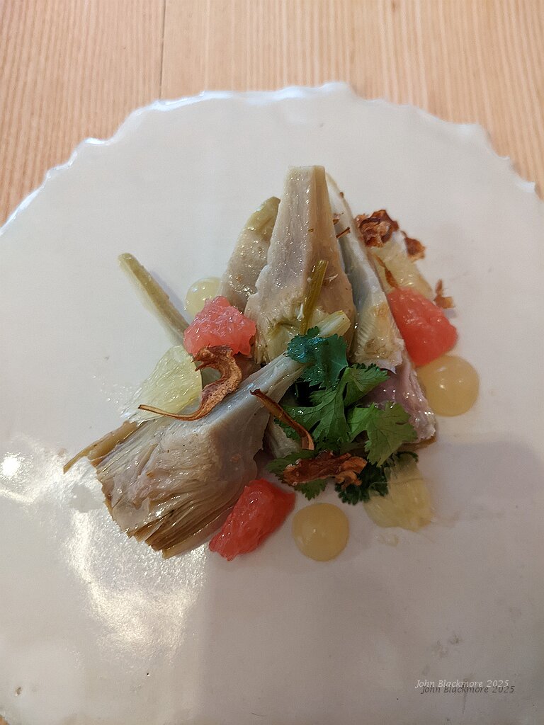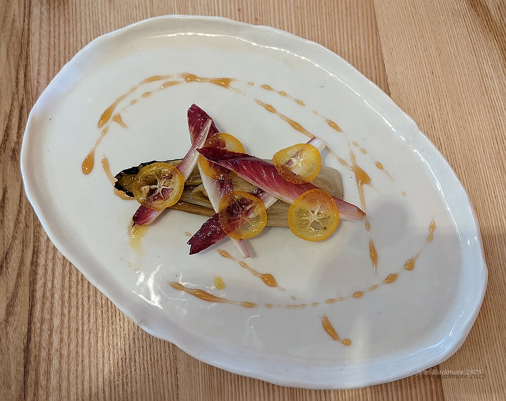 marinaded scallops, turnip discs, apple and celery, sauce vierge