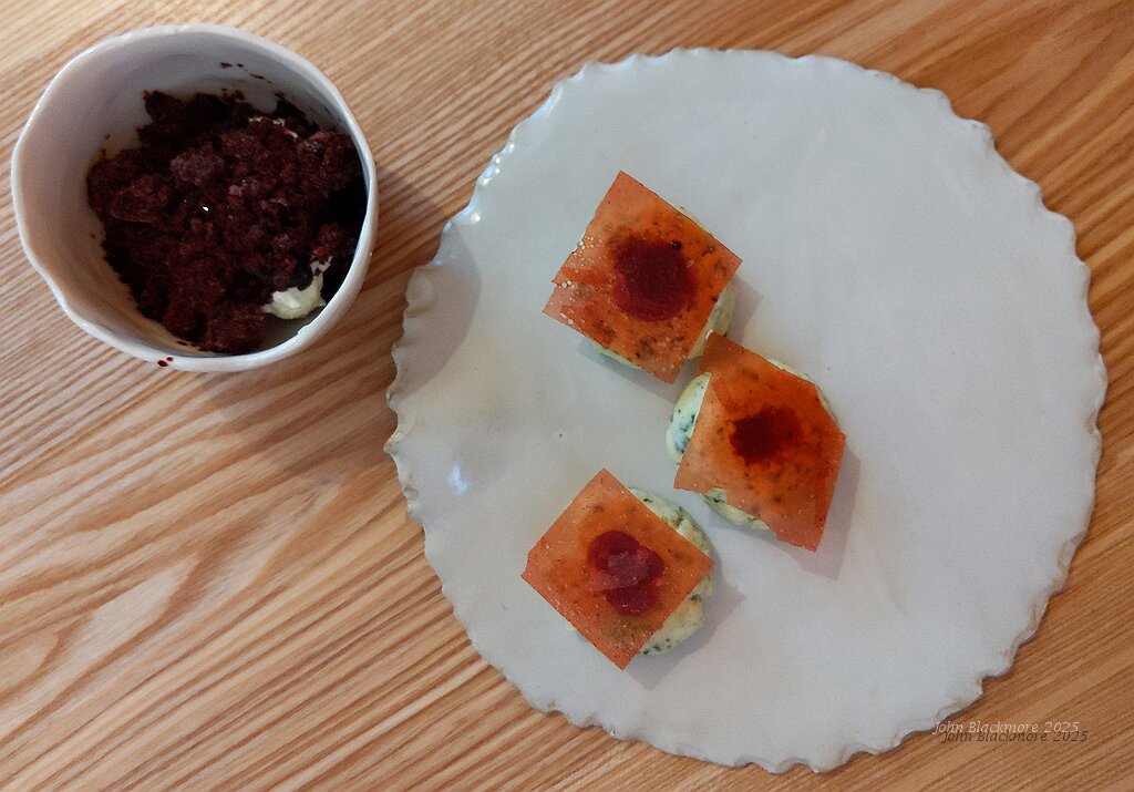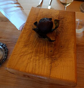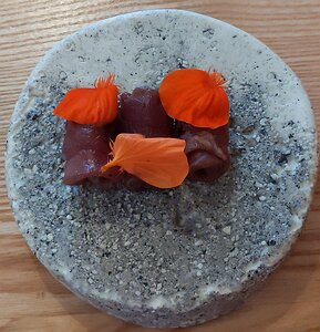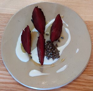first vegetable course: barbecued beetroot with yoghurt and honey
