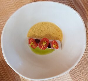 second fish course: sea bream cooked in butter with tomatoes, fennel, aniseed and fish sauce