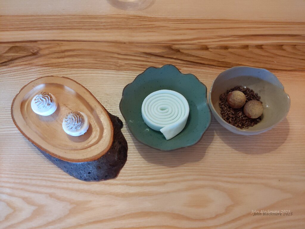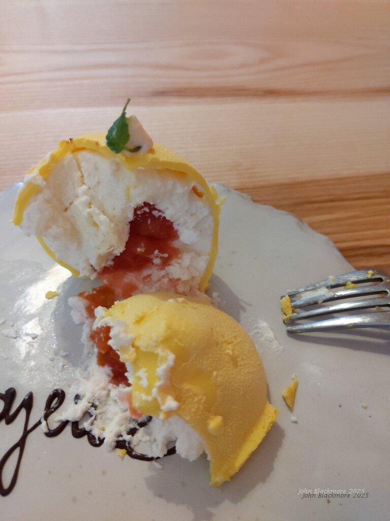 pepper-dusted white chocolate ball filled with mirabelle