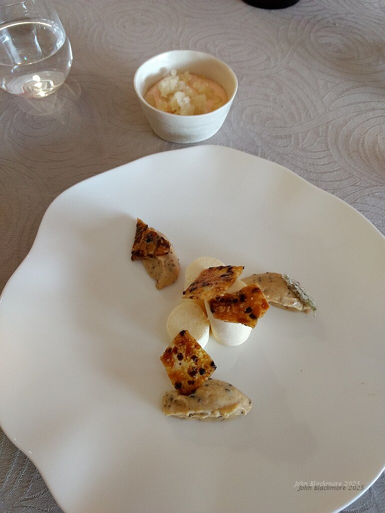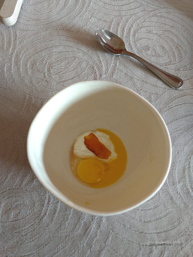amuse bouche (2) - sous vide quail egg, horseradish cream and bacon