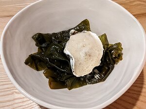 seaweed bouillon with soy sauce, orange, citron to drink separately