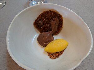 first dessert: calamansi lime sorbet with hazelnut crunch and chocolate cream mousse