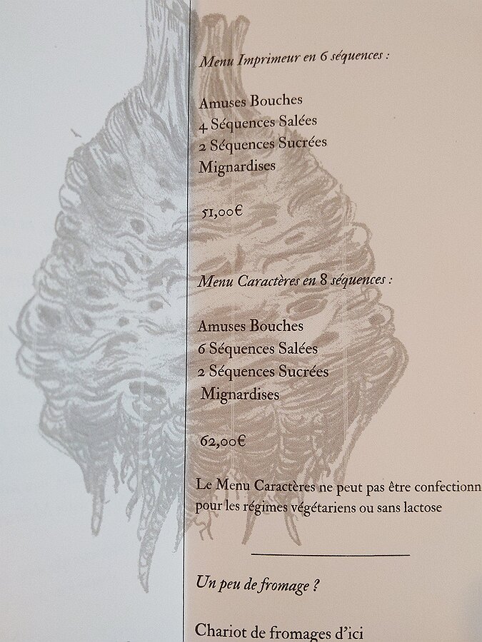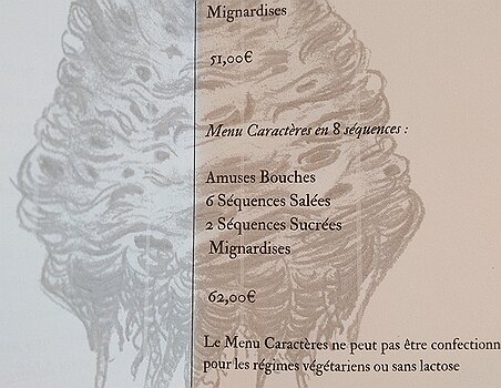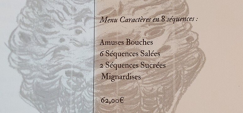 We chose our usual the Menu Caractères en 8 séquences (62€)