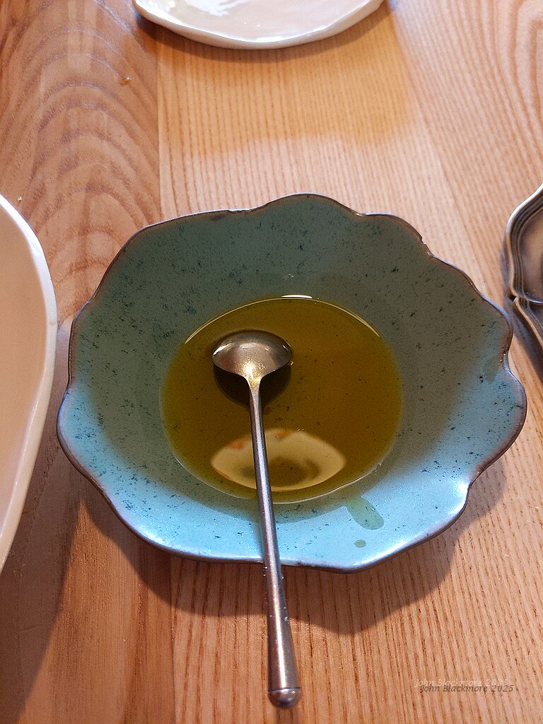 Camargue oyster in shell poached over fire with apple dice and apple foam