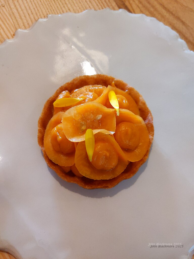 butternut squash tartlet with lemons from Perpignon, yuzu and lemon caviar