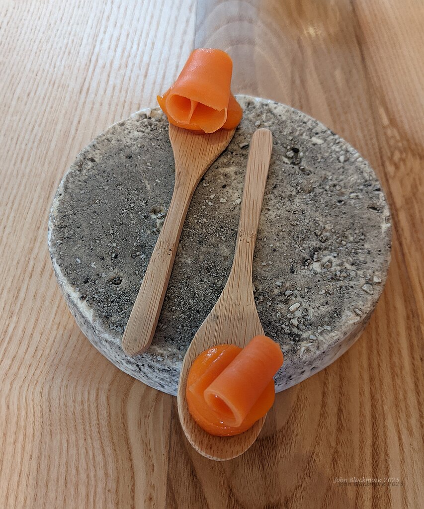 marinaded scallops, turnip discs, apple and celery, sauce vierge
