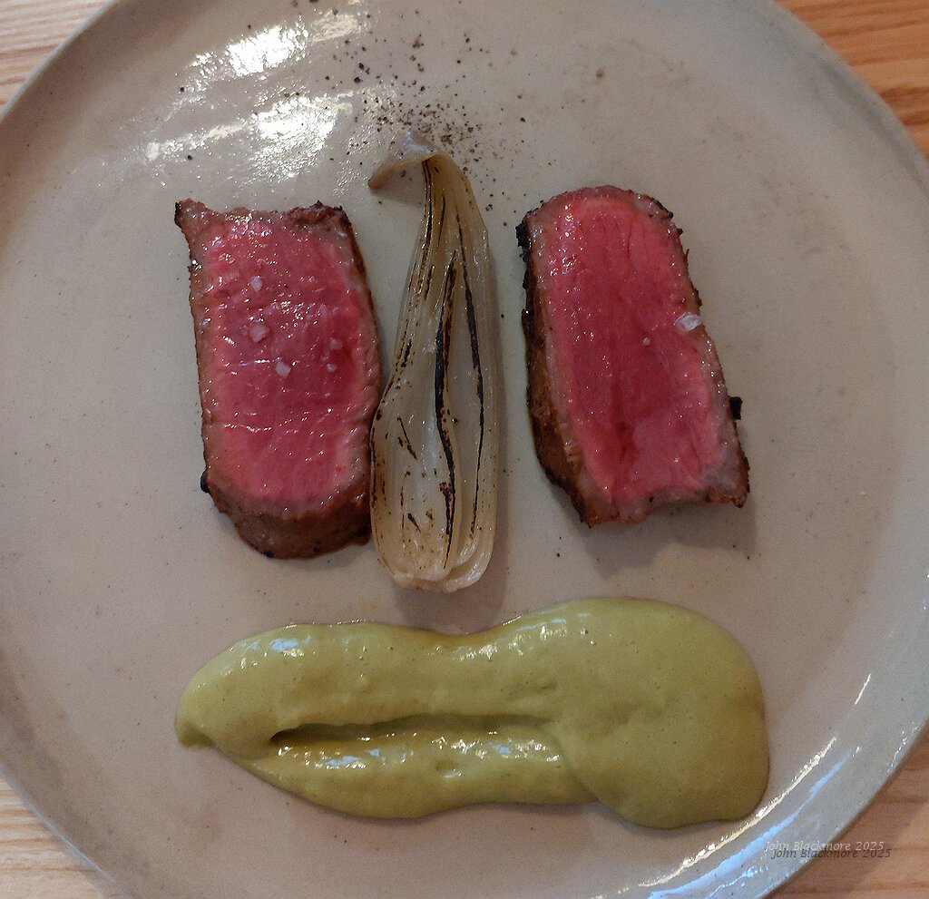 second meat course: beef cooked over the fire, shallot, parsley béarnaise sauce