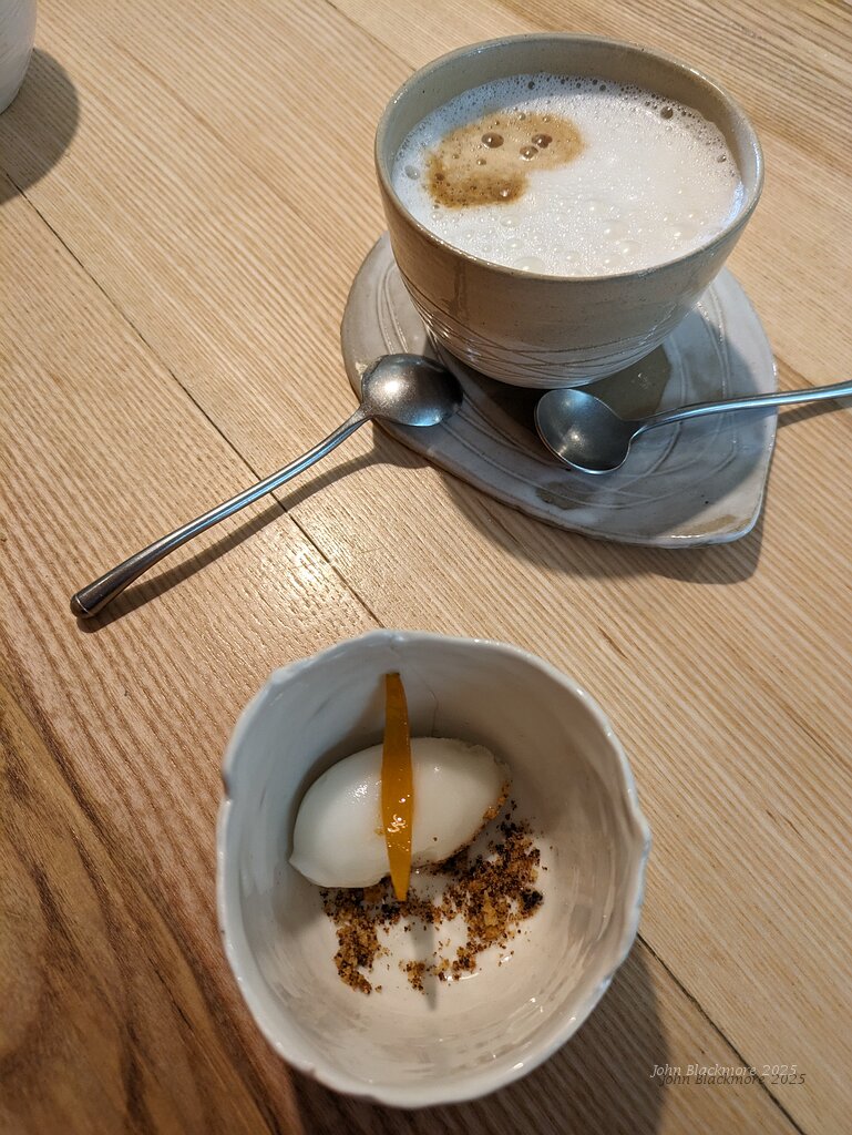 ceviche de loup de mer (sea bass), champignons à la Grecque, citron