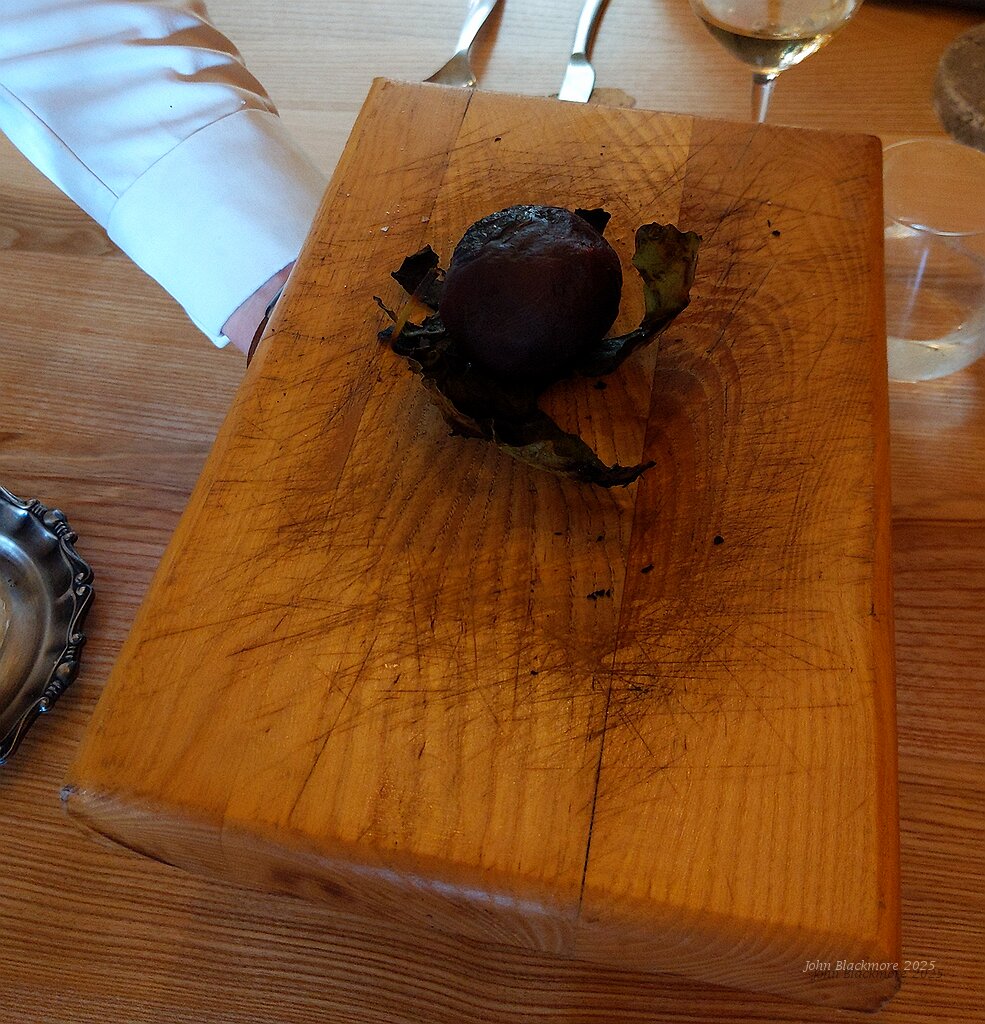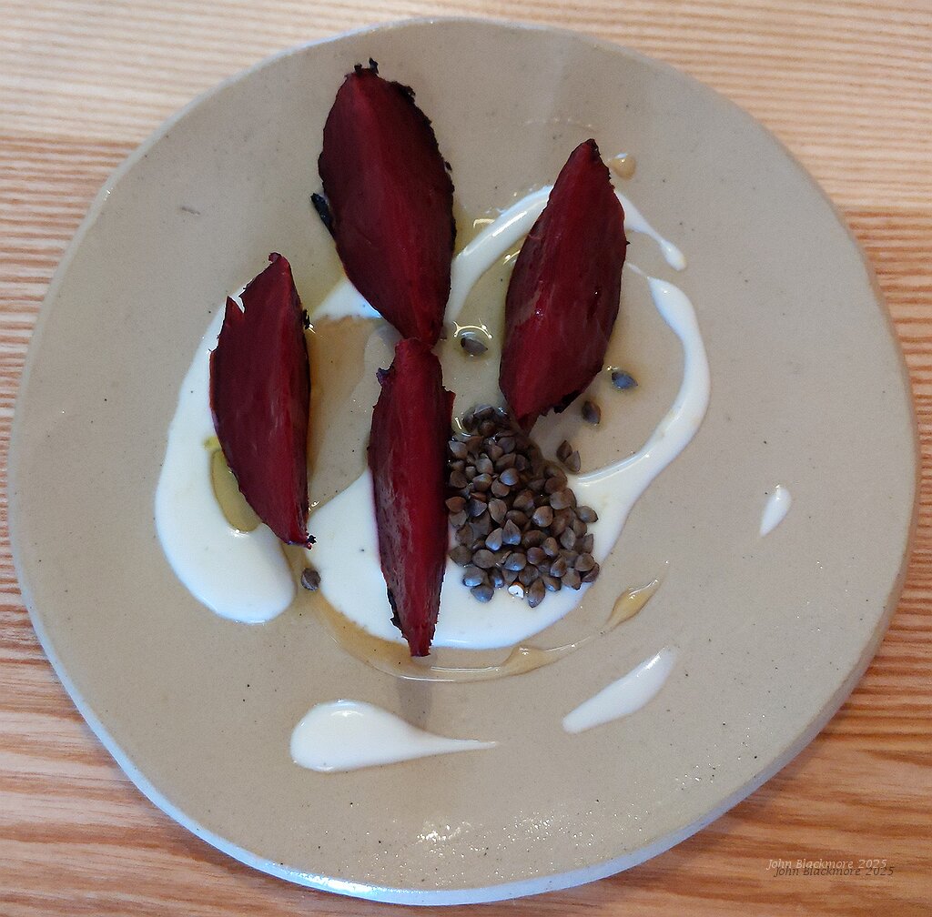 first vegetable course: barbecued beetroot with yoghurt and honey