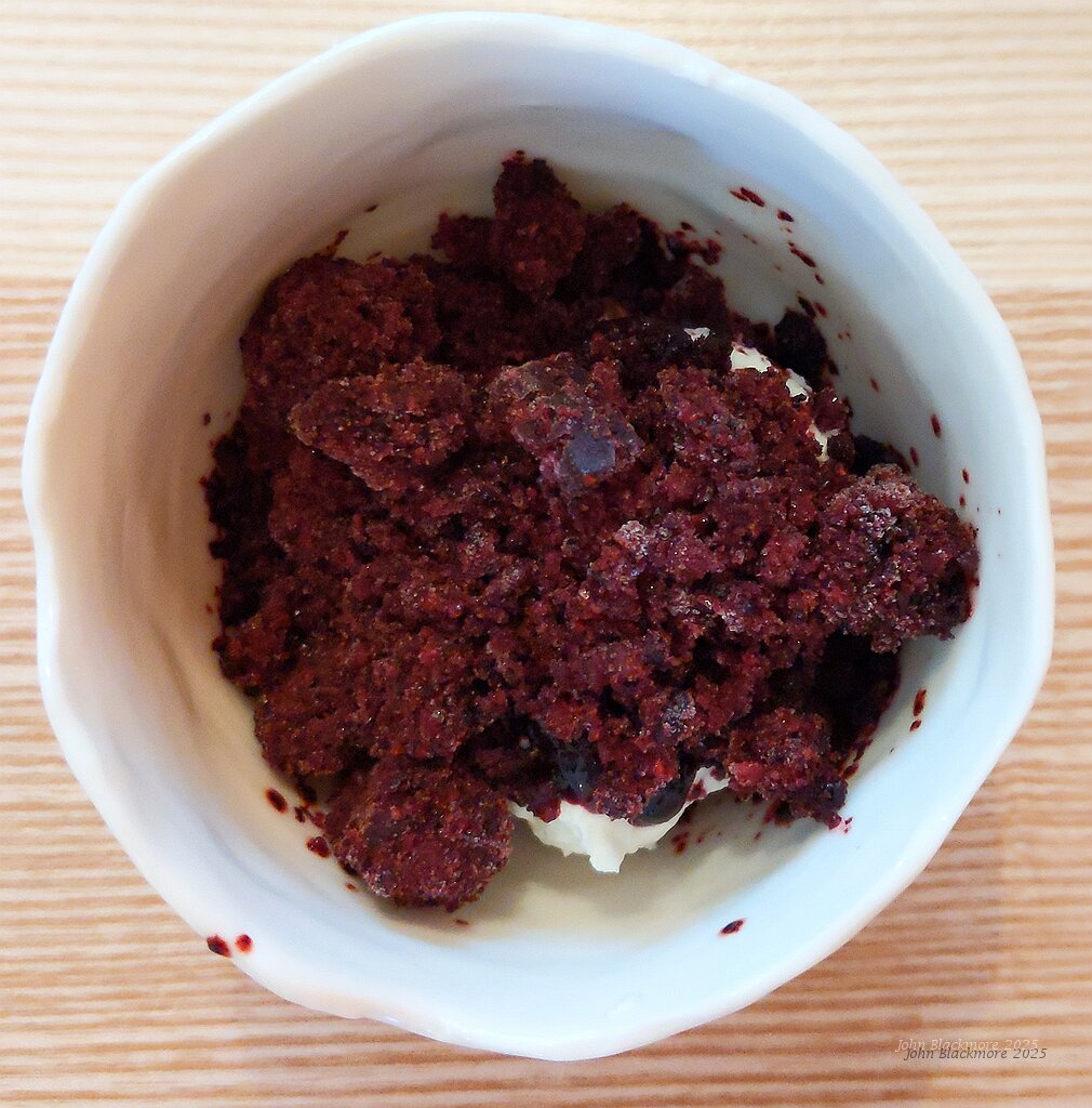 second dessert: lovage cream and strawberry brittle; myrtille crème fraiche and crumble