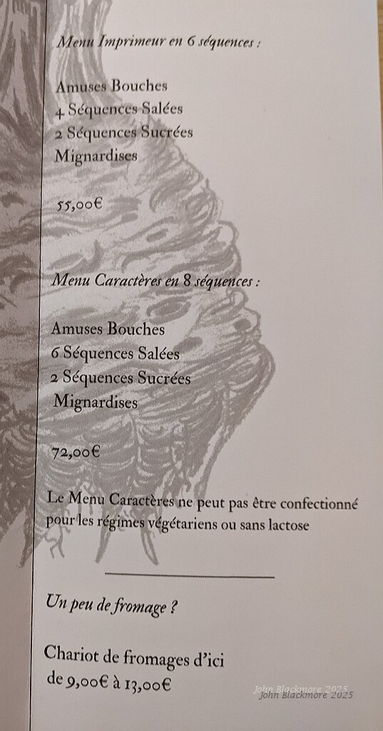 We chose our usual Menu Caractères en 8 séquences (72€)