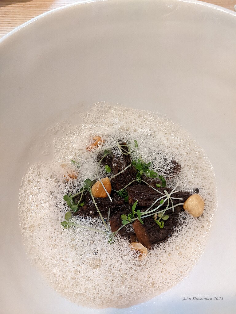fourth course: Morels and and hazelnuts with a light hollandaise made with kefir