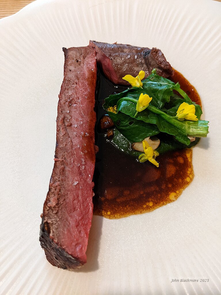sixth course: Roasted lamb with St George's mushrooms, colza leaf, spinach