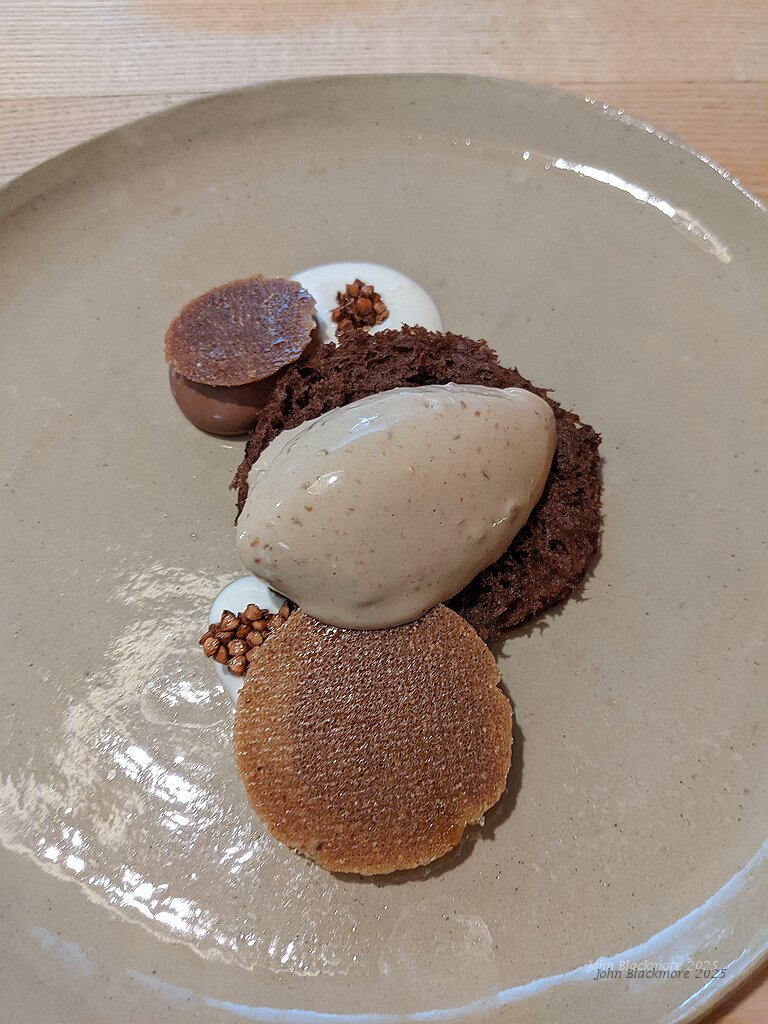 eighth course: Chocolate and sarrasin, sponge, mouse, tuiles and cream