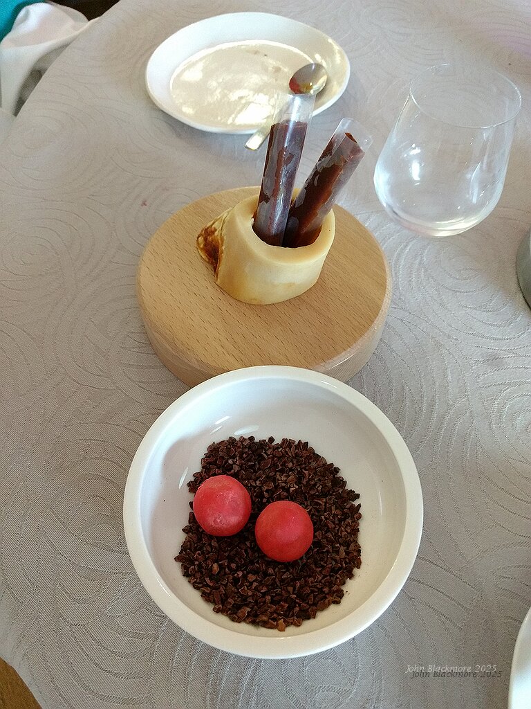 meat: pigeon (from Saulcy-sur-Meurthe), beetroot, sarrasin (buckwheat) biscuits, raspberry couli