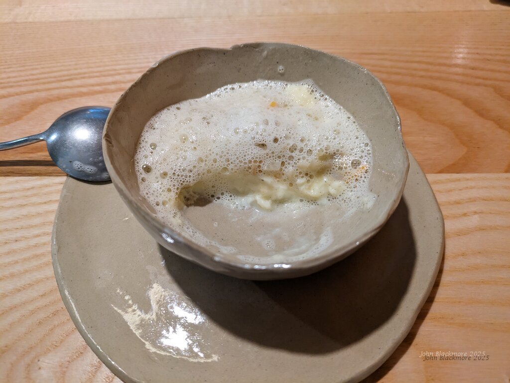 chawanmushi (flan aux oeufs japonais), celery, garlic, dashi, cockles with celery stock cream