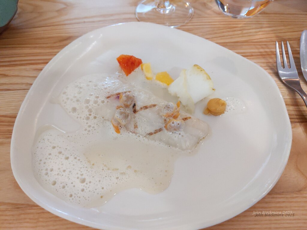 Second course: Dover sole with lemon, grapefruit and white pith of cedrat (citron from Pyrénées-Orientales) and with a cockle sauce