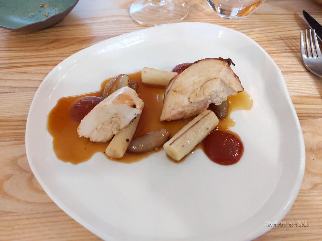 Third course: Fire-roasted chicken with salsify, shallots and rosehip (cynorhodon) purée