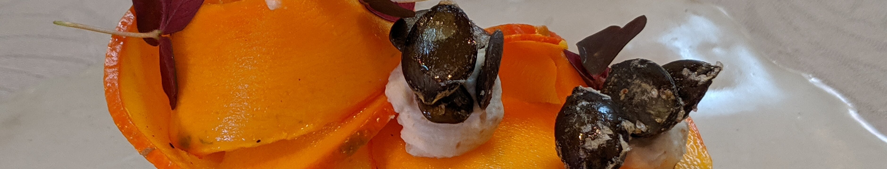 Amuse bouche 1: potiron cones with potiron cream, pumpkin seeds and smoked paprika