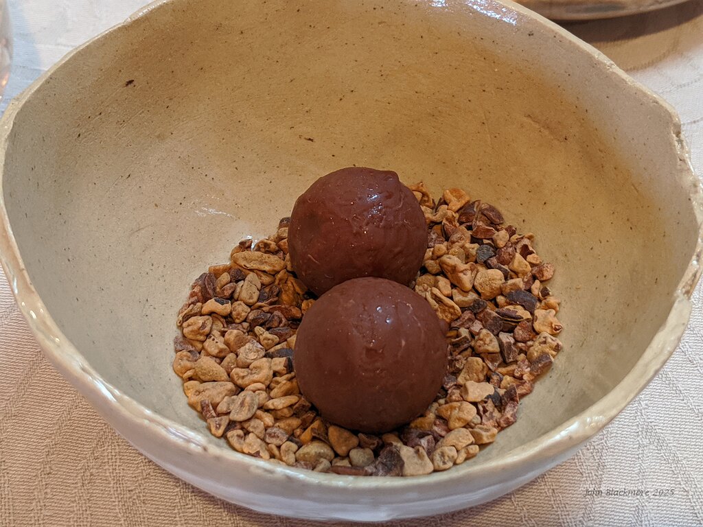 first dessert: calamansi lime sorbet with hazelnut crunch and chocolate cream mousse