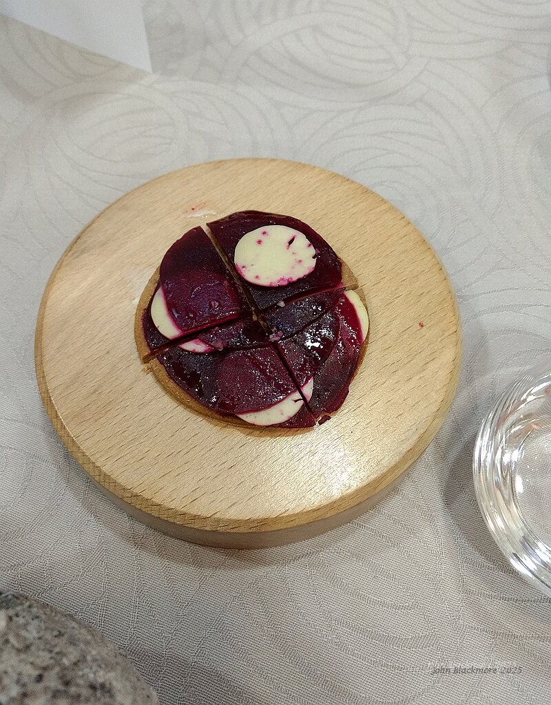 Amuse bouche: beetroot, tomme, sarrasin biscuit