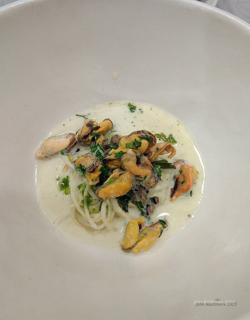 Le Céleri de Baccarat, en spaghetti, Moules de Bouchot du Mont St Michel, Persil, Truffe