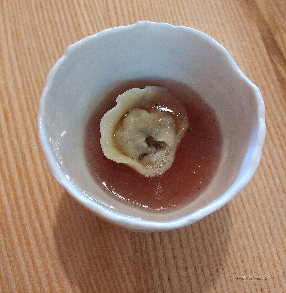 Camargue oyster in shell poached over fire with apple dice and apple foam